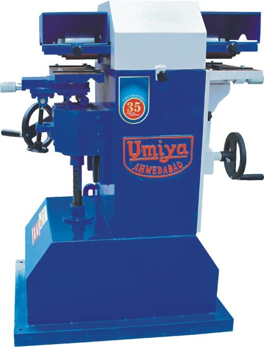 The machine features two adjustable work tables—one for the main side and one for the second side